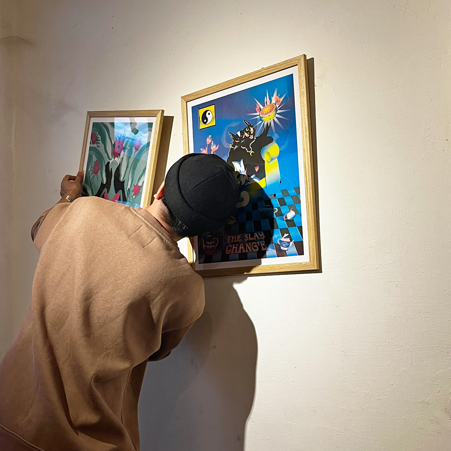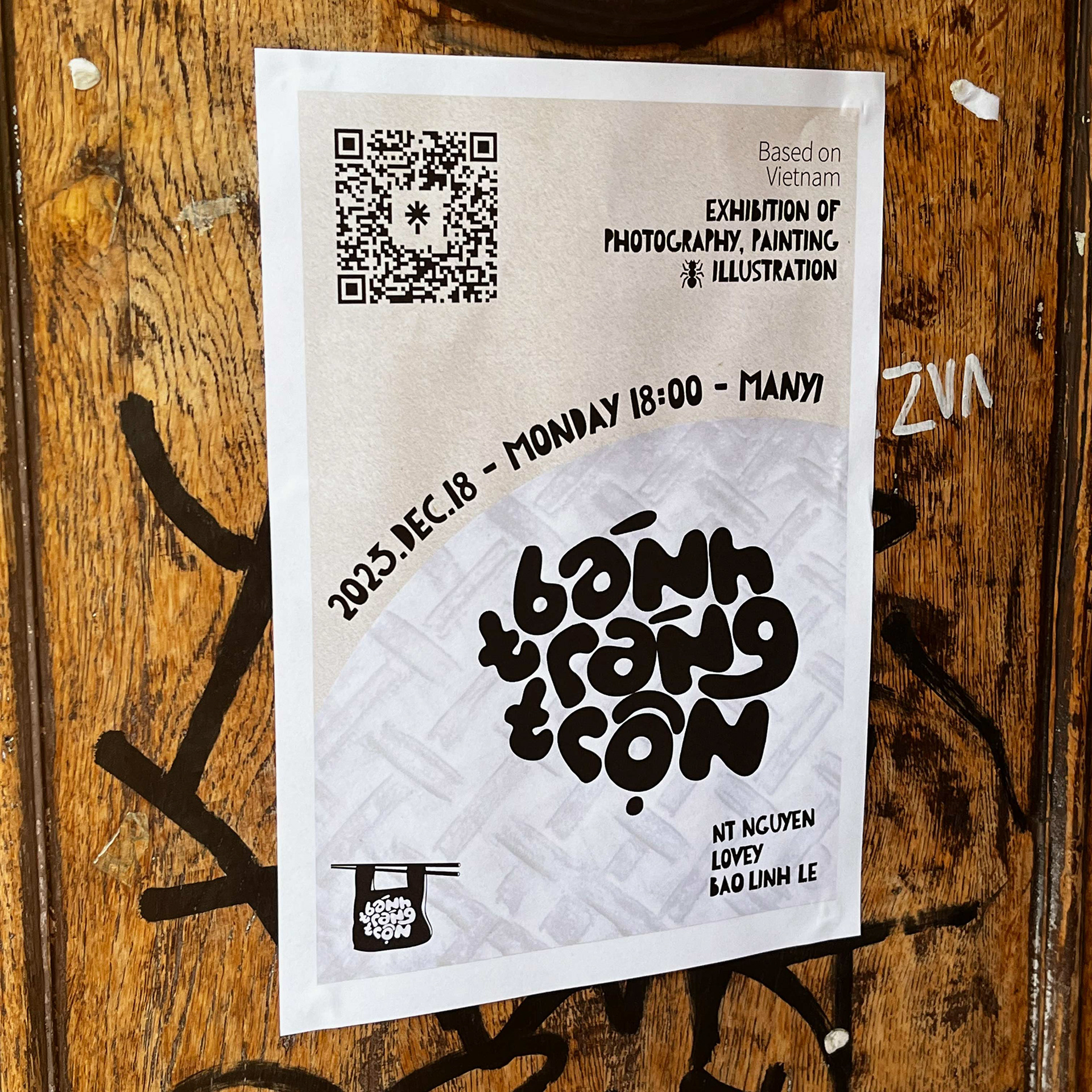The exhibition “Bánh tráng trôn” /Bæn træŋ tran/ is their first ever joined exhibition at Manyiv Kultura in Budapest, Hungary. The name “Bánh tráng trộn” means mixed rice paper in Vietnamese; is a popular Vietnamese street food made of rice paper mixing with a varieties of other ingredients. Originated as a snack for school students, it has since gained popularity in all over Vietnam and with oversea Vietnamese communities. “Bánh tráng trộn” is known as a satisfying and enjoyable snack due to its many unique regional combinations of textures.